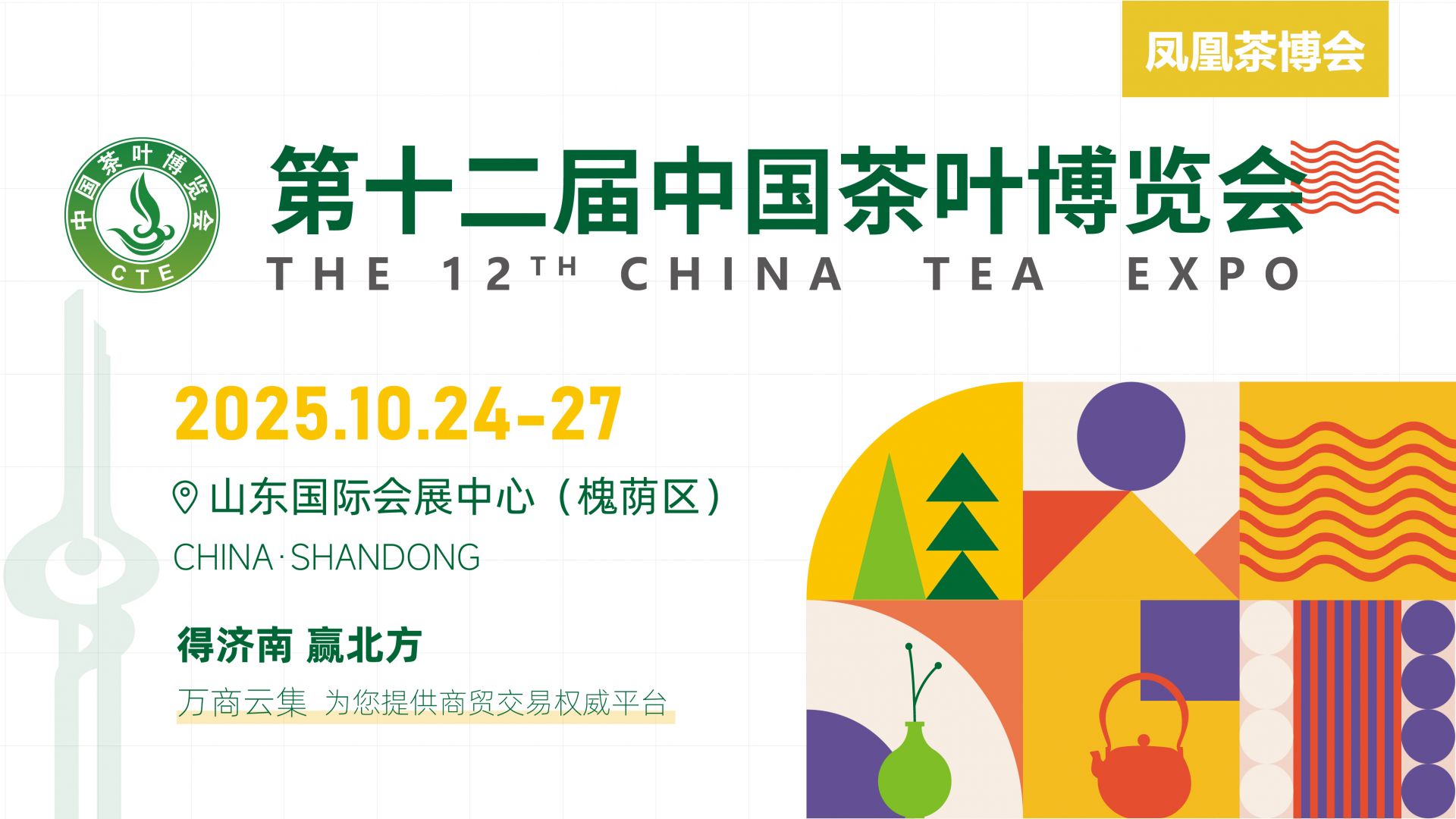 2025年10月24-27日,第十二届中国茶叶博览会,将在山东国际会展中心(济南槐荫区)举行!诚邀您来喝茶!